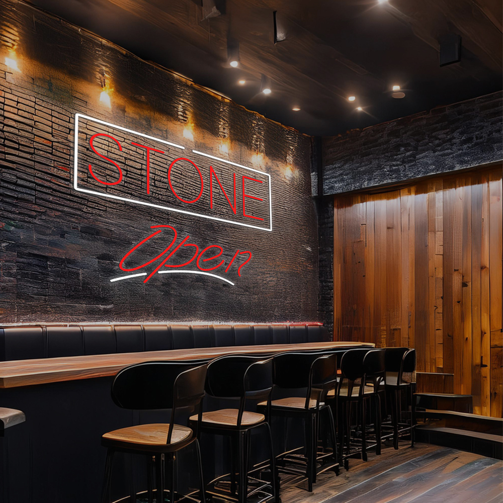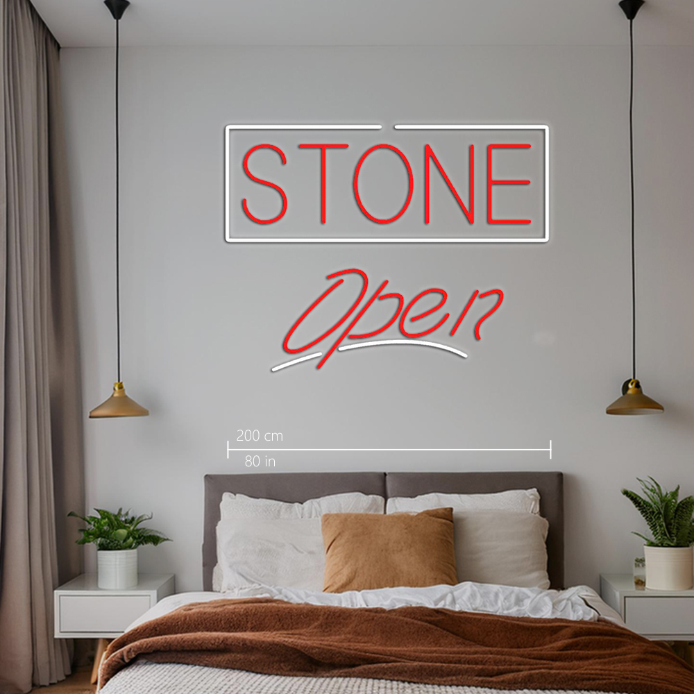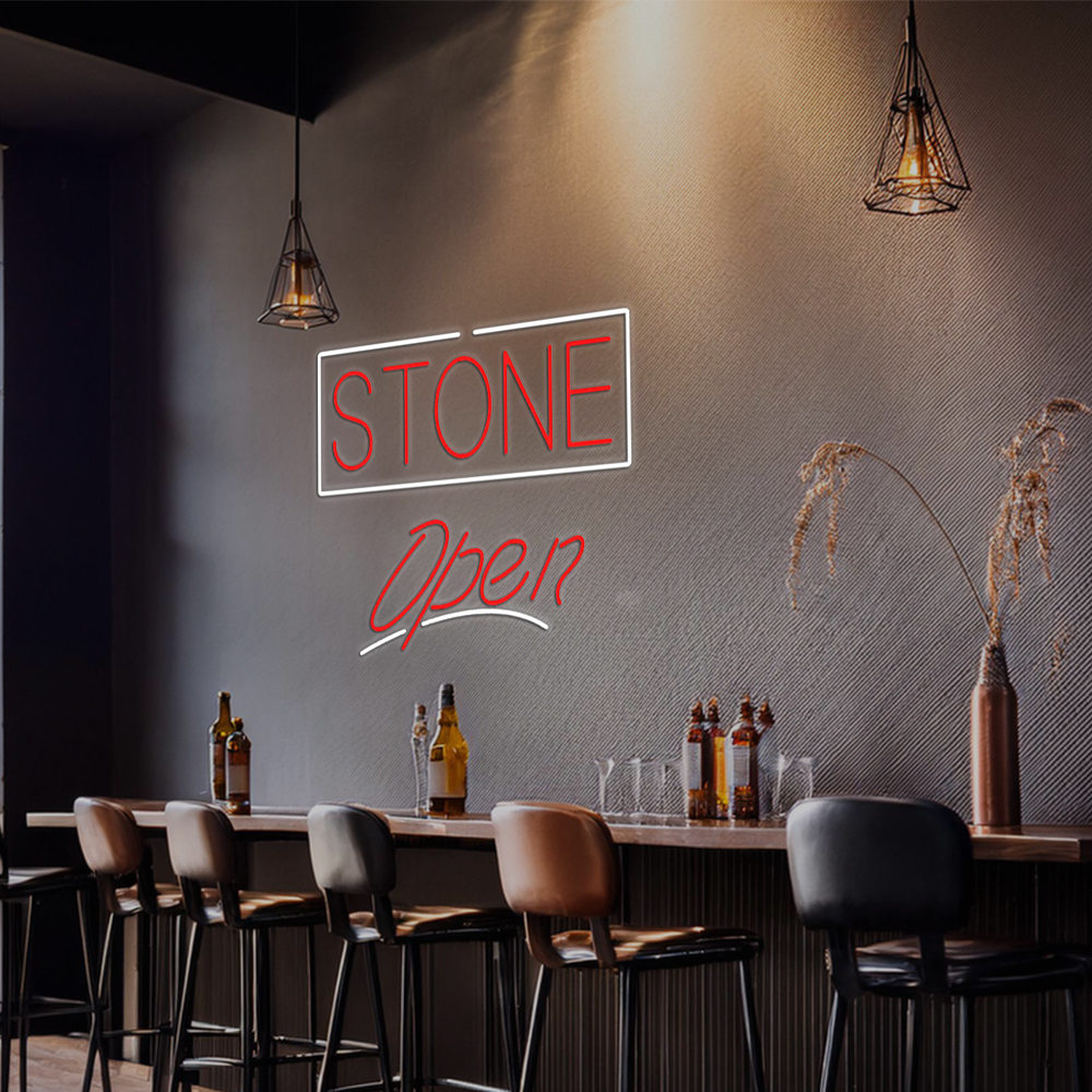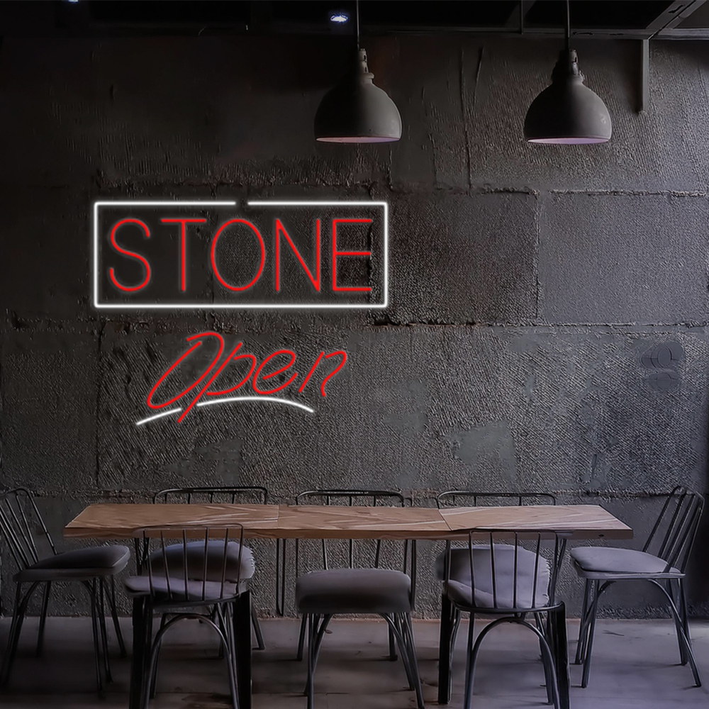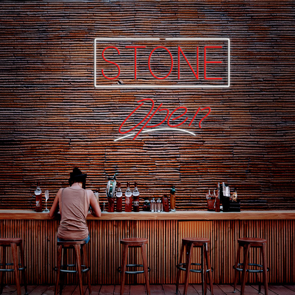 Stone Script Open Handmade Art Neon Signs