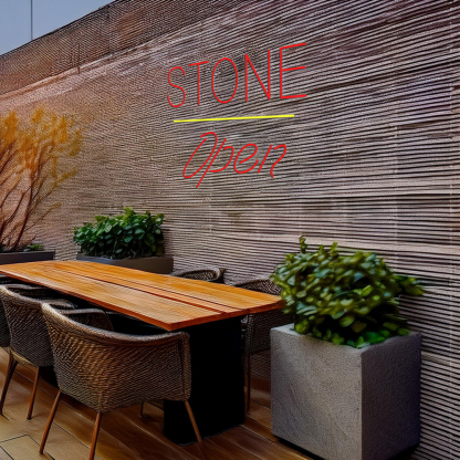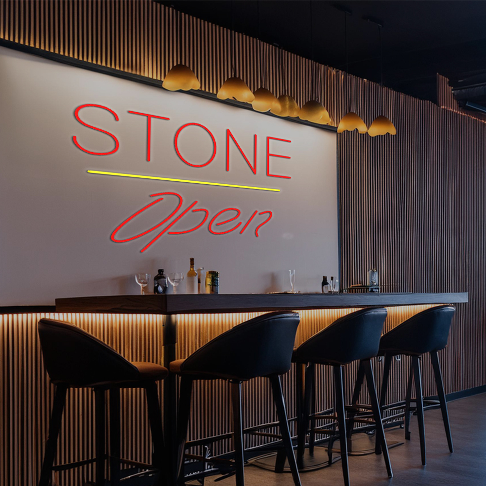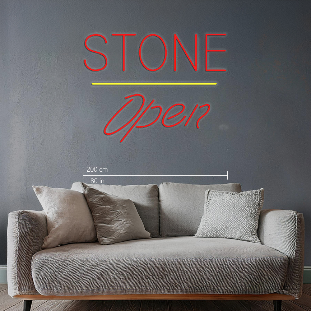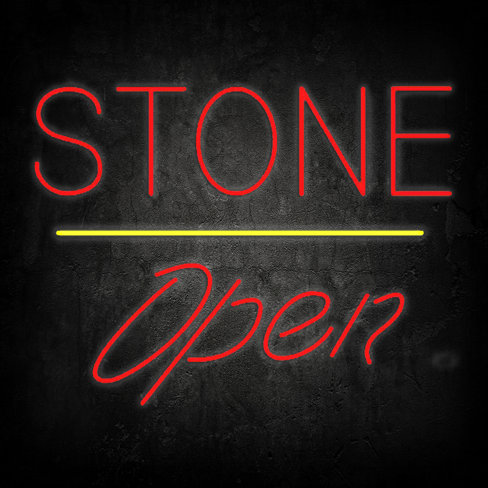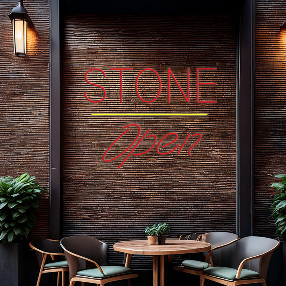 Stone Script Open Yellow Line Handmade Art Neon Sign