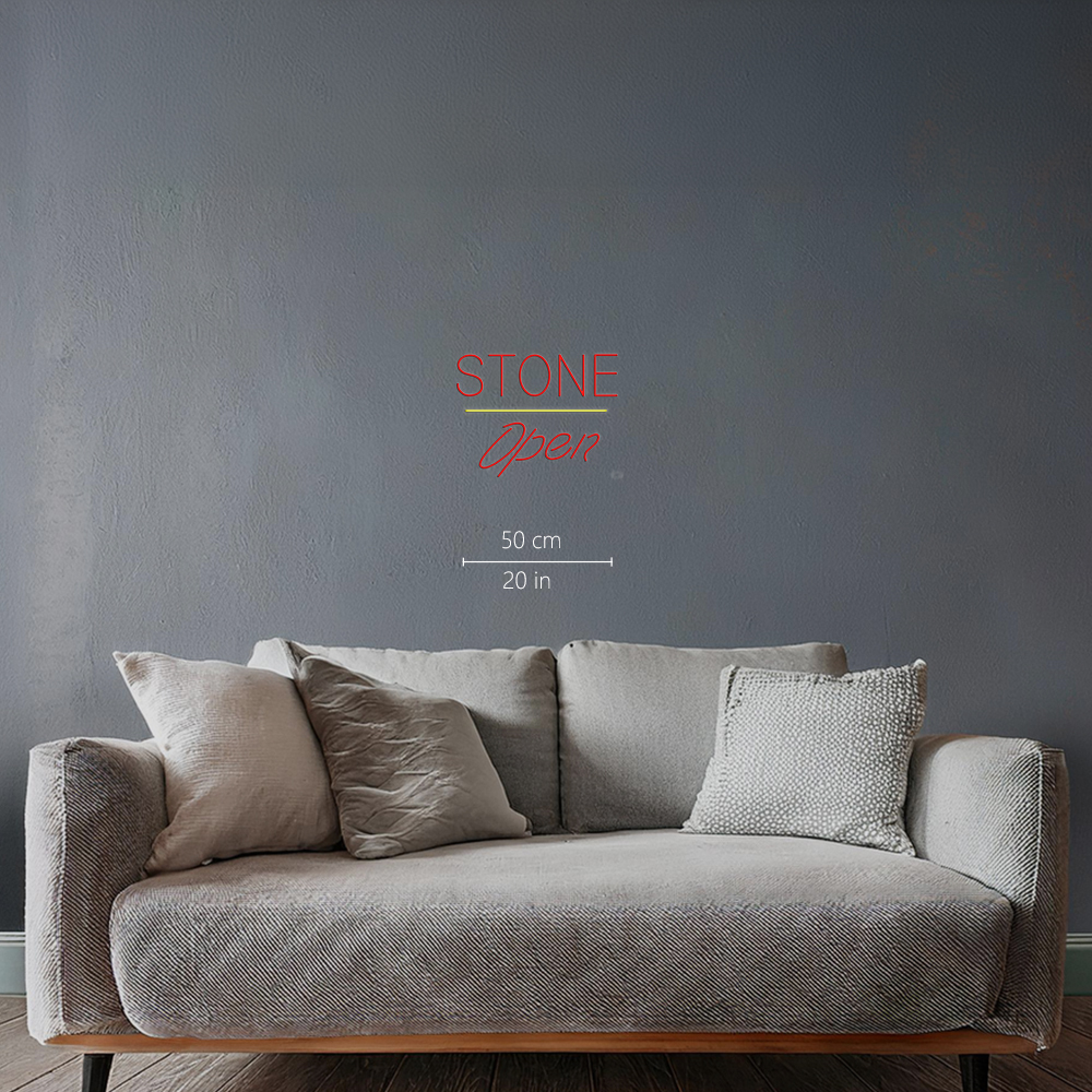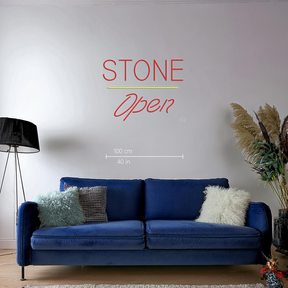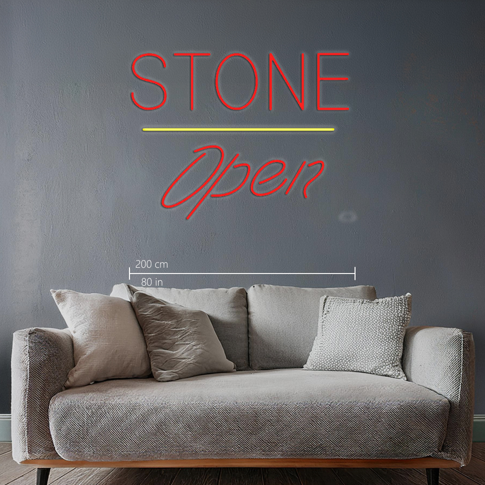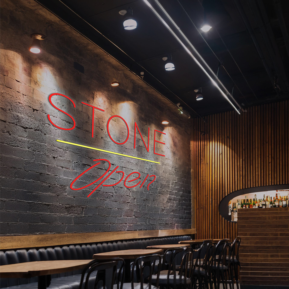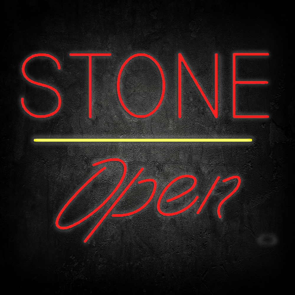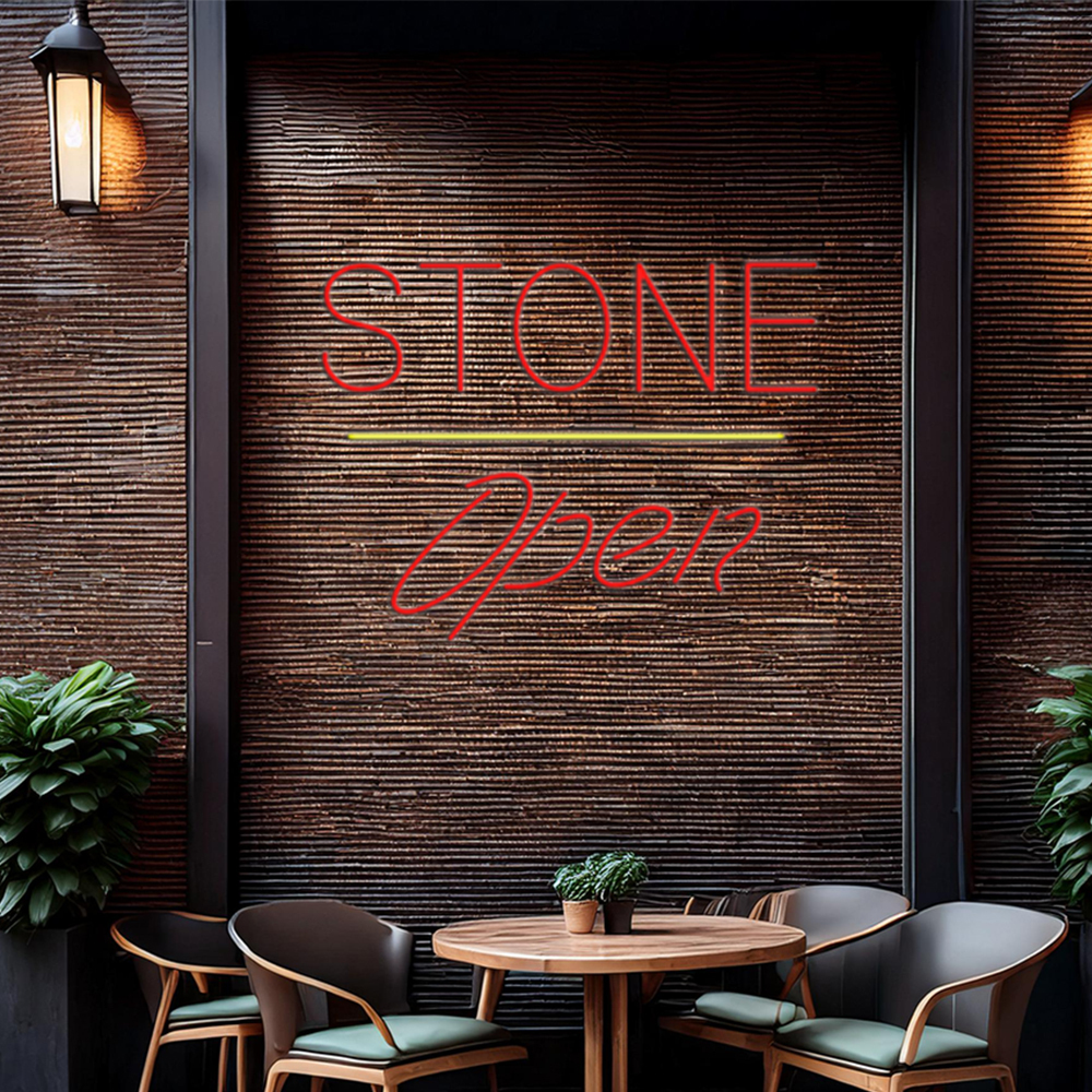 Stone Script Open Yellow Line Handmade Art Neon Signs