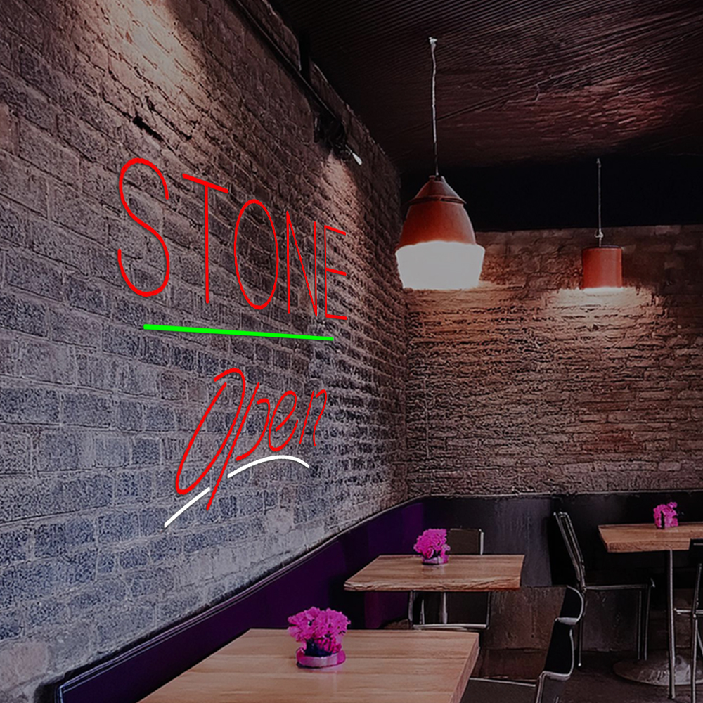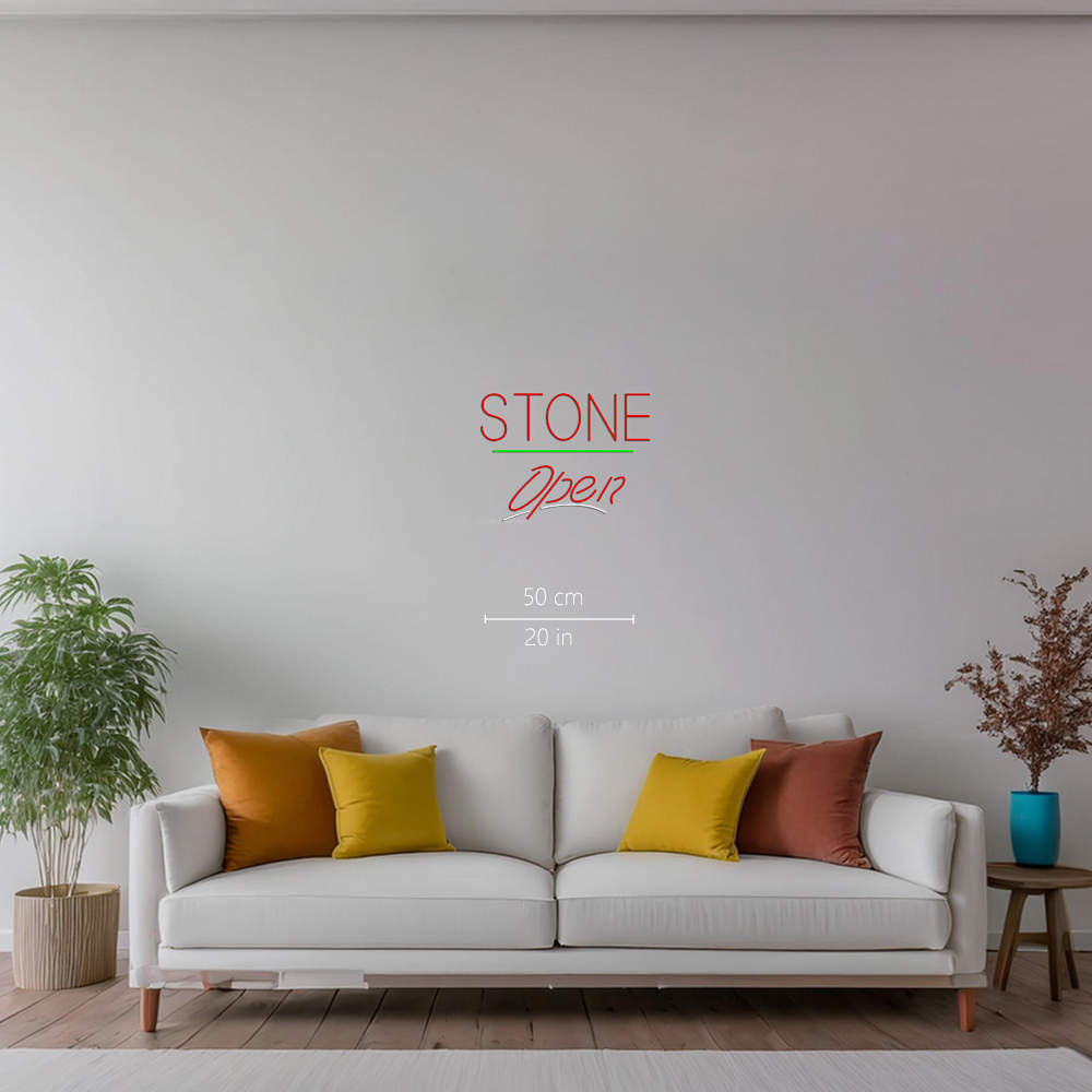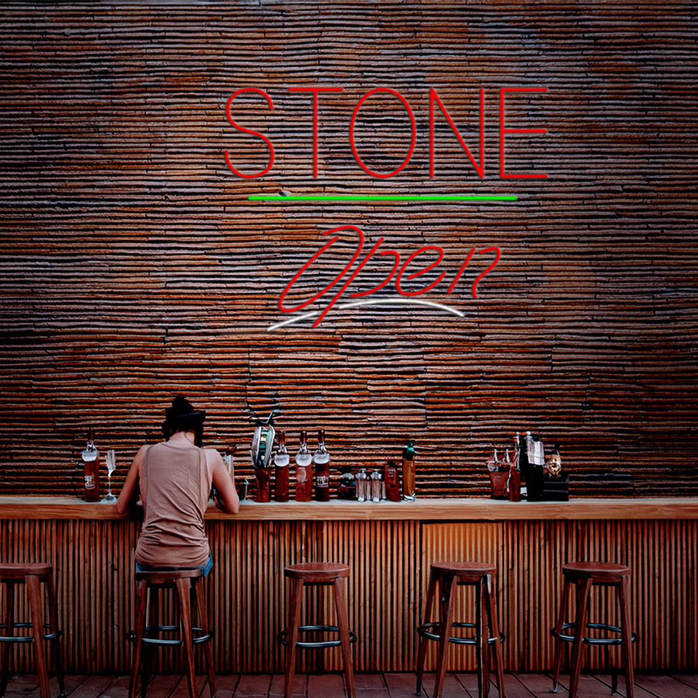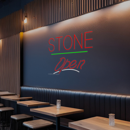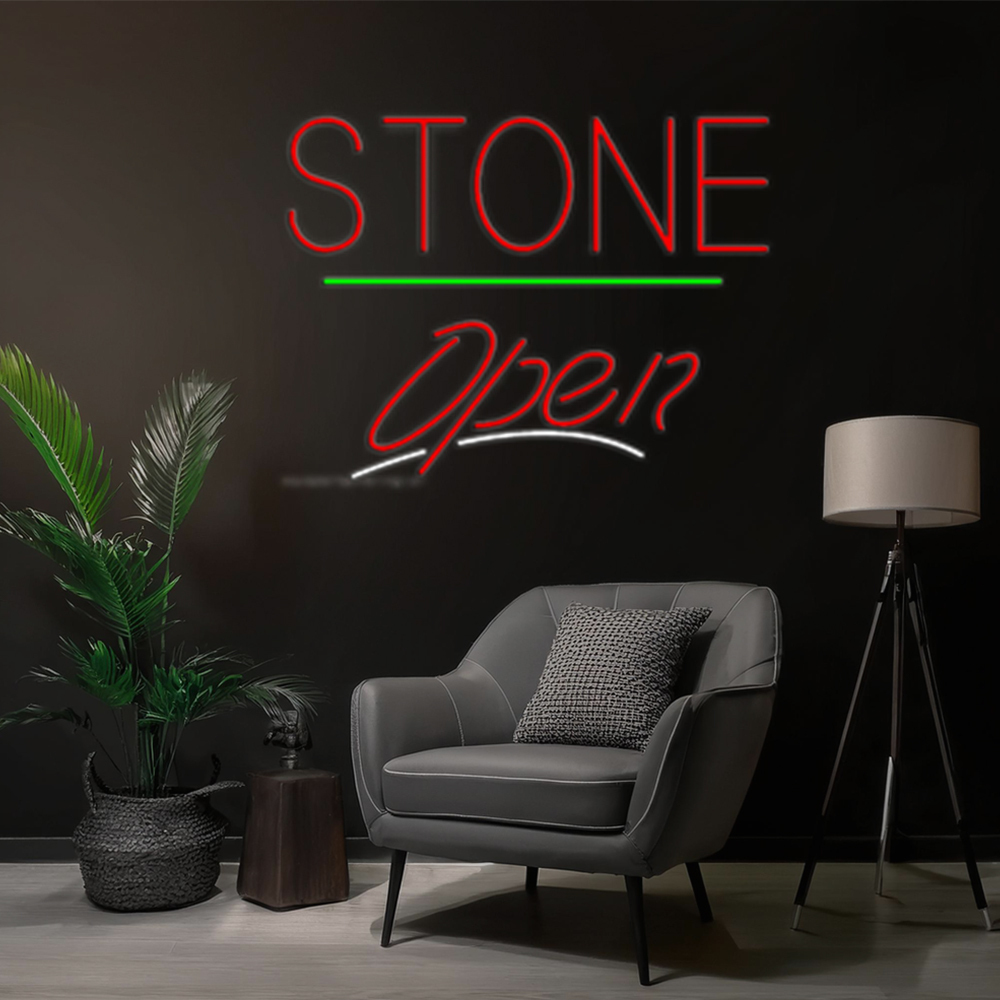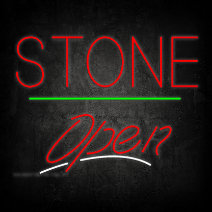 Stone Script2 Open Green Line Handmade Art Neon Sign