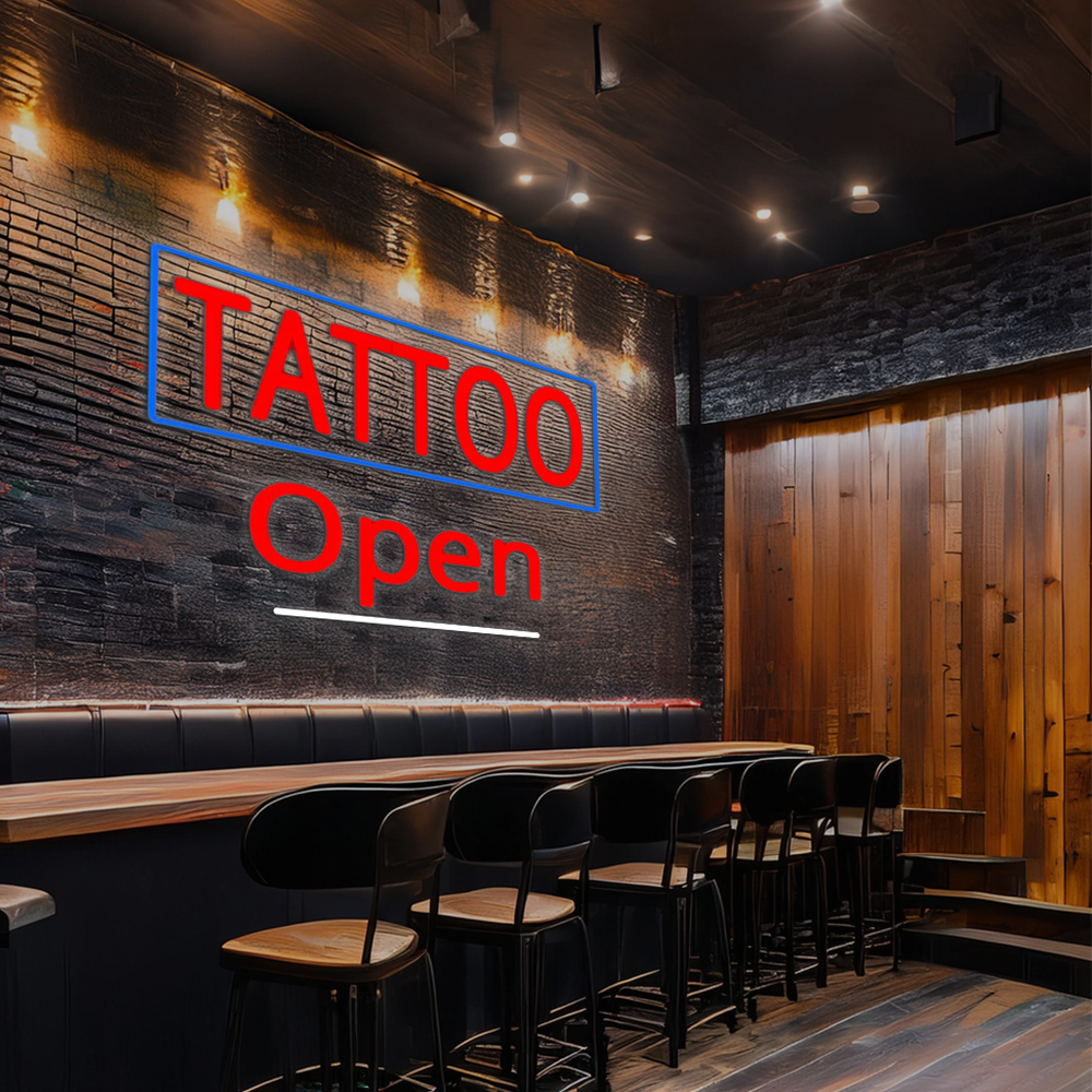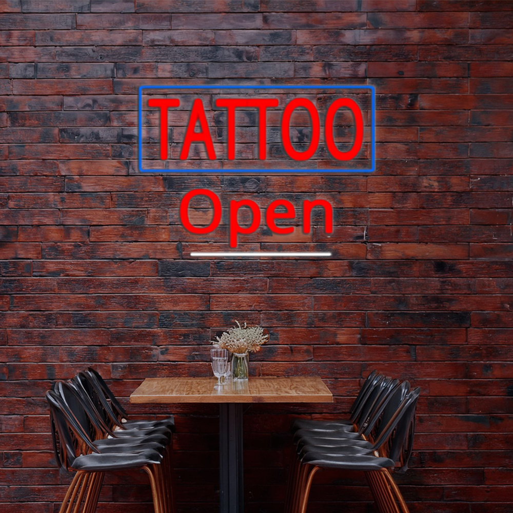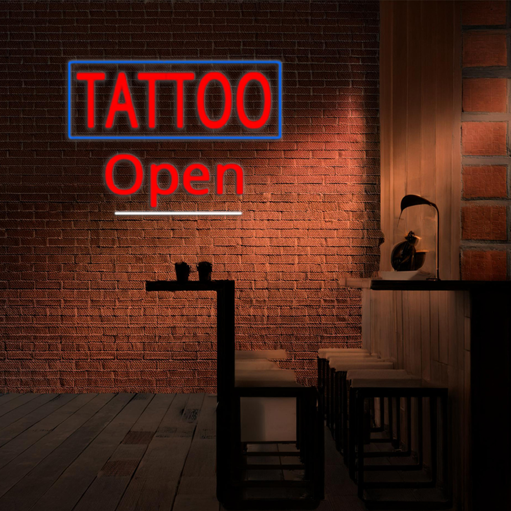 Tattoo With Blue Border Open Handmade Art Neon Signs
