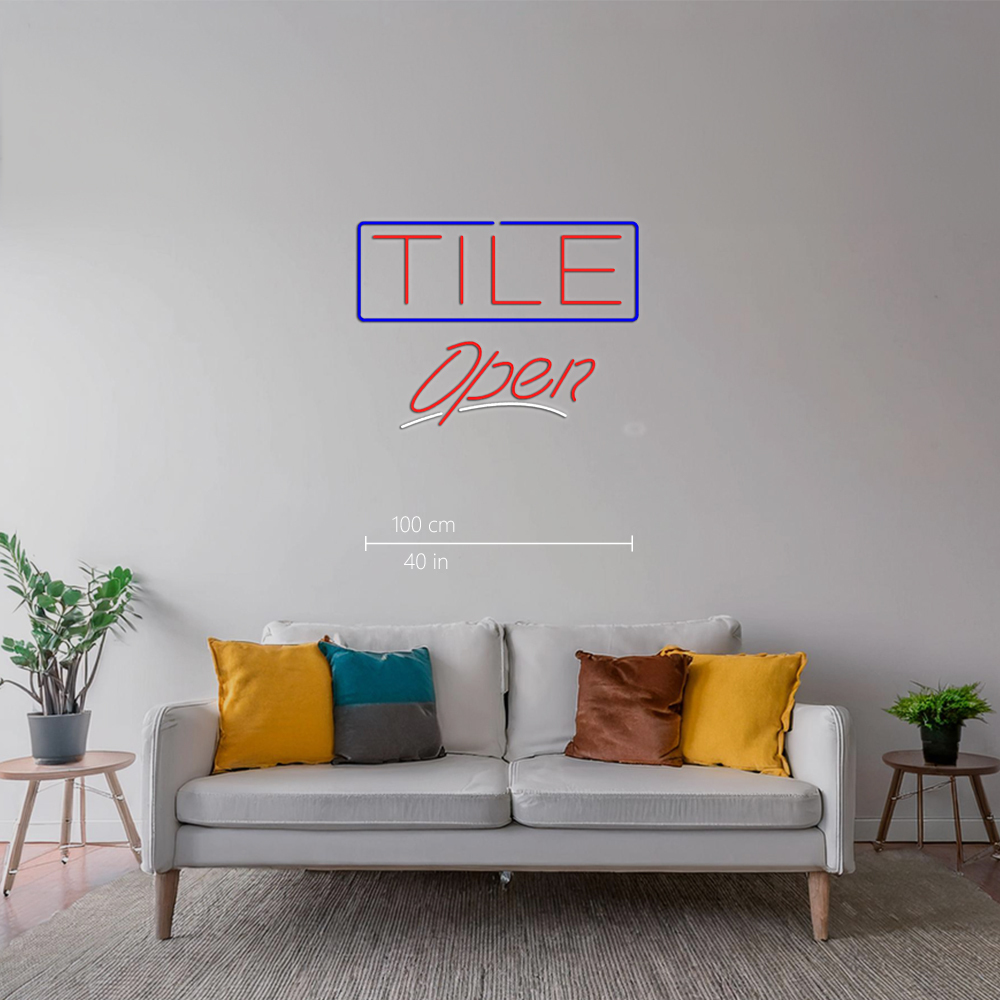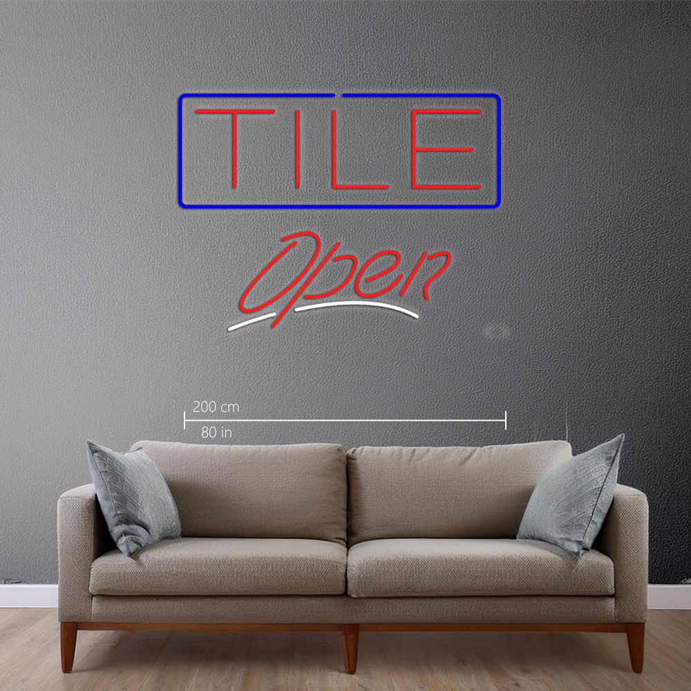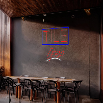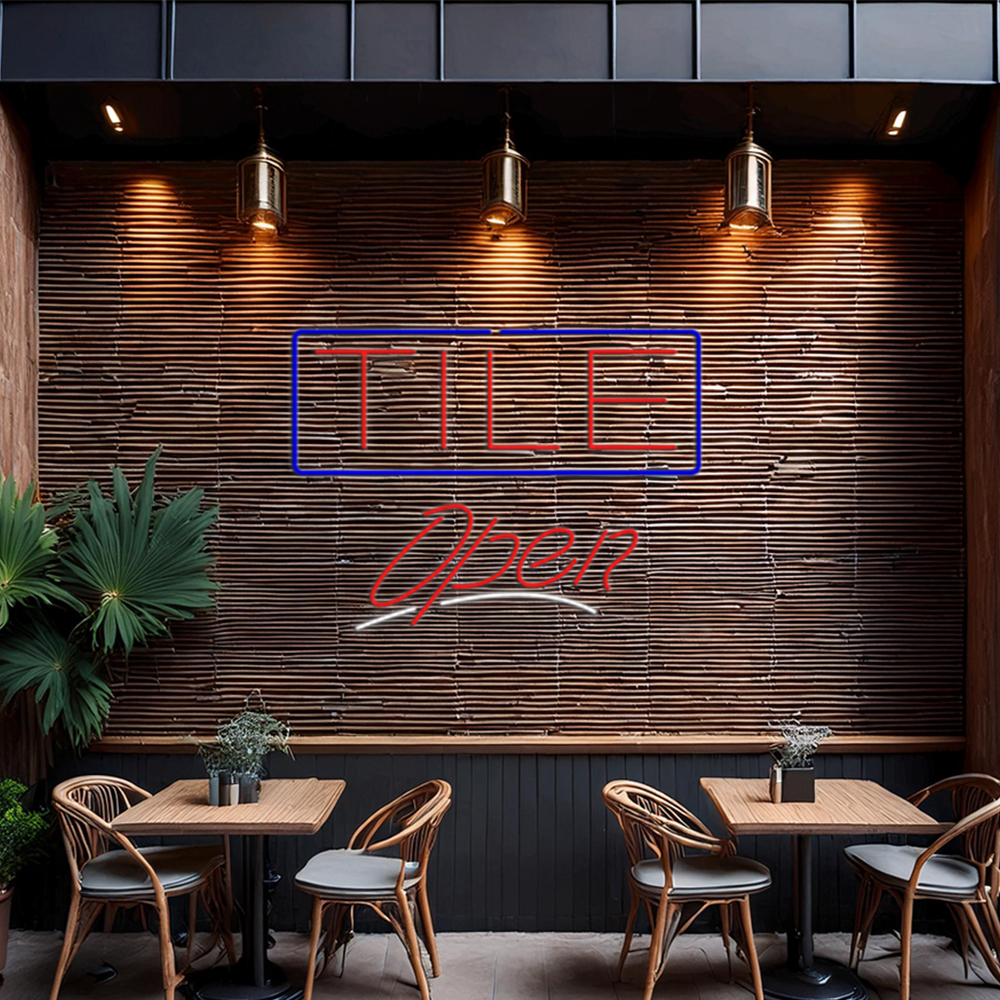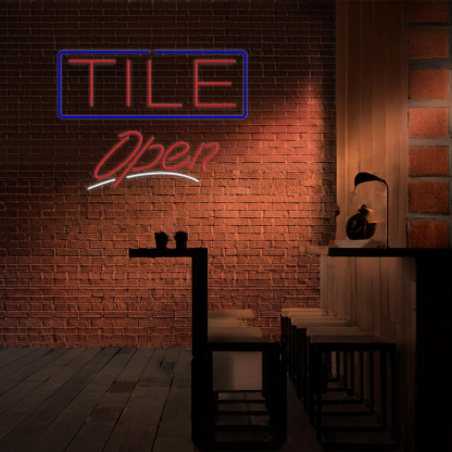 Tile Script Open Handmade Art Neon Signs Home Decor