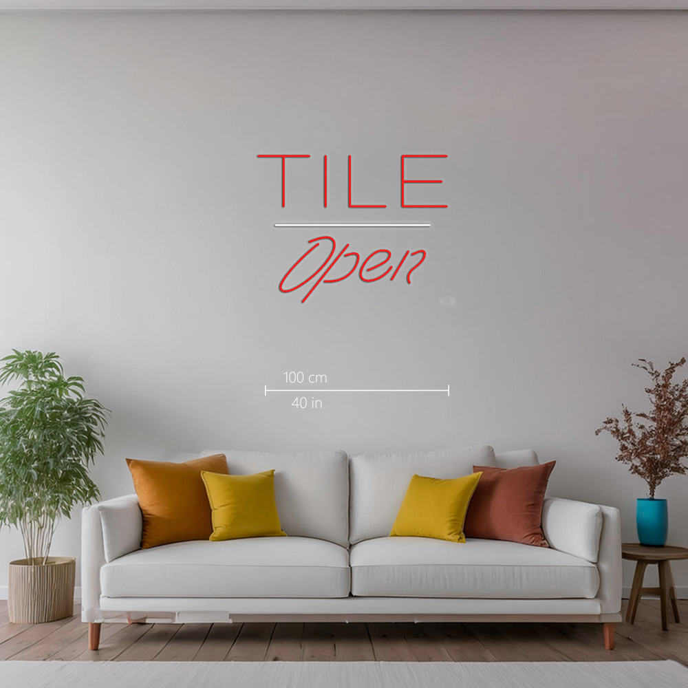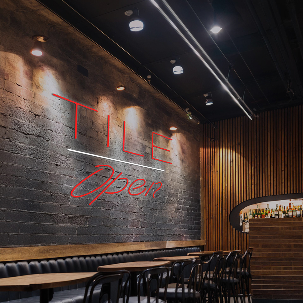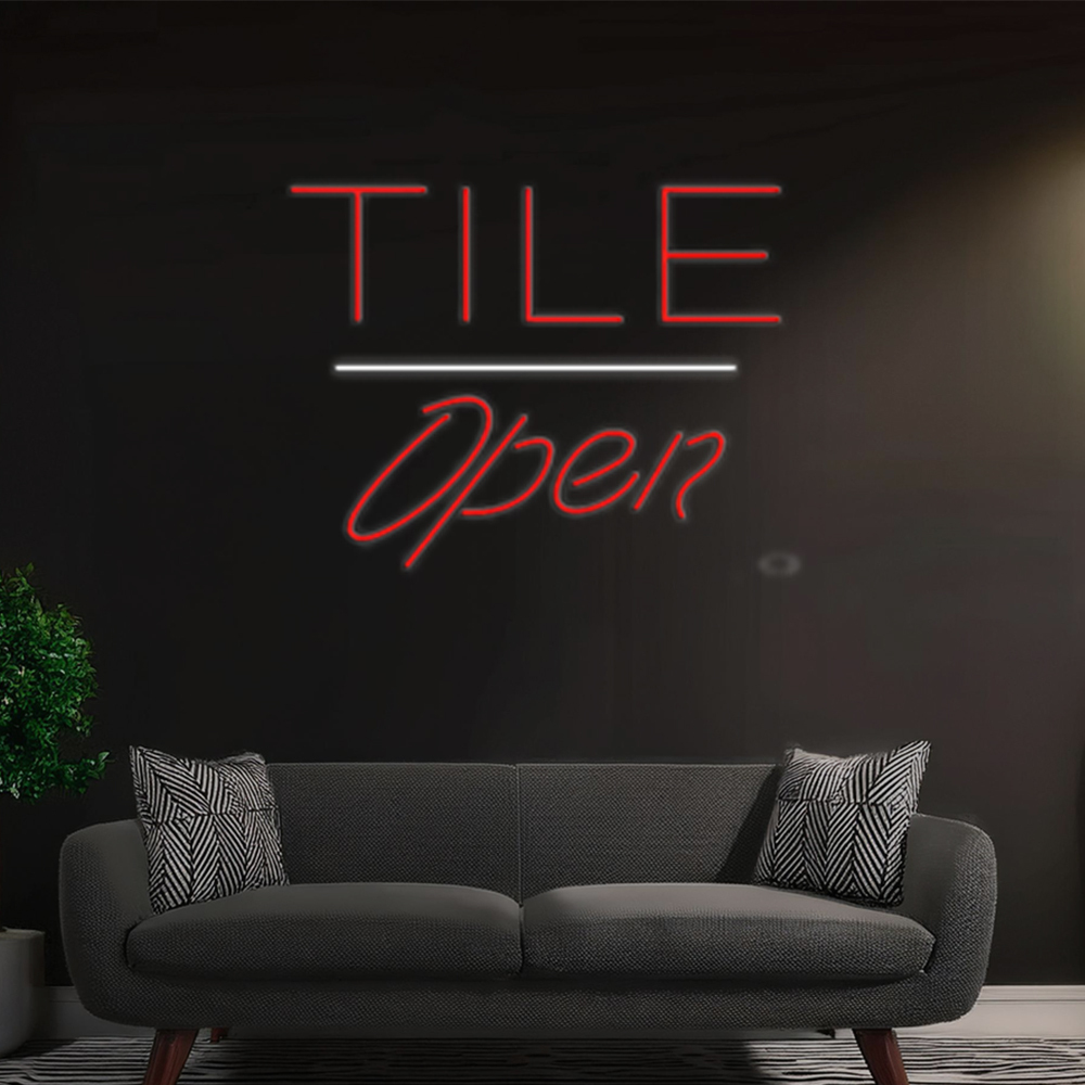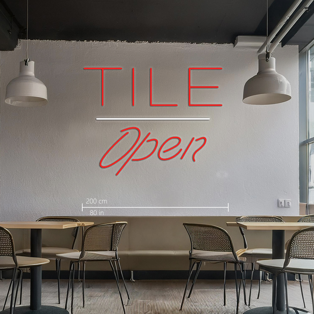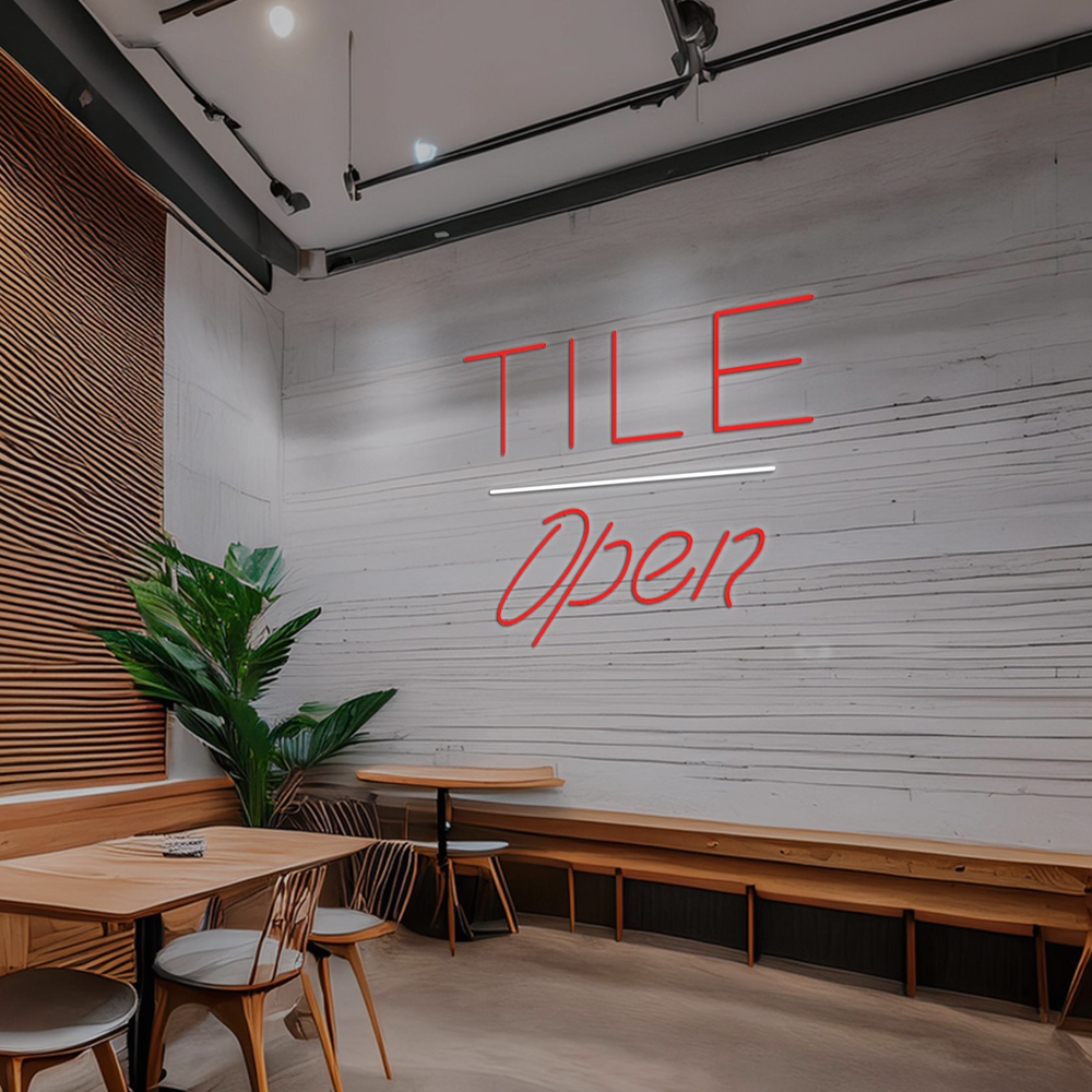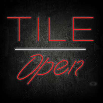 Tile Script Open White Line Handmade Art Neon Signs