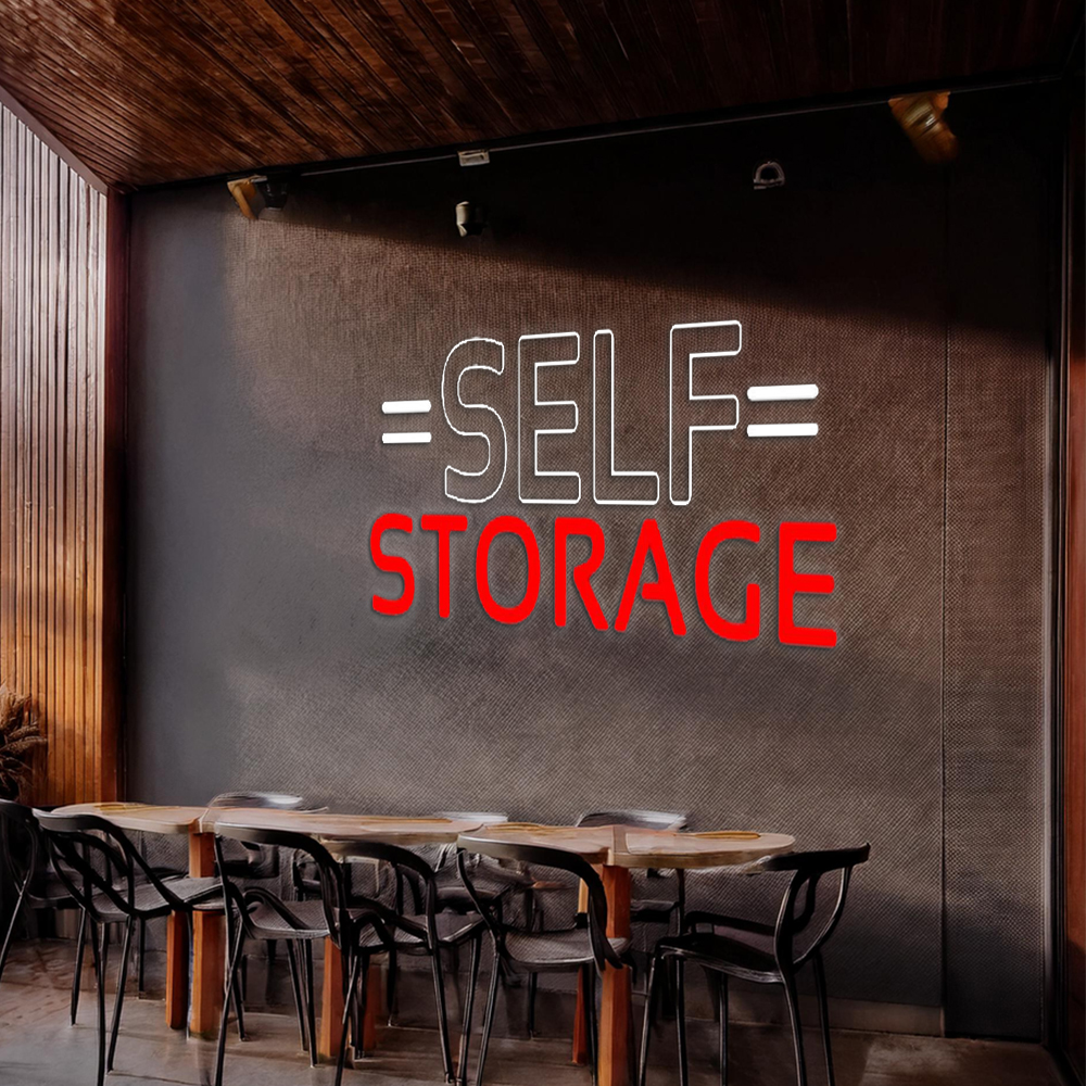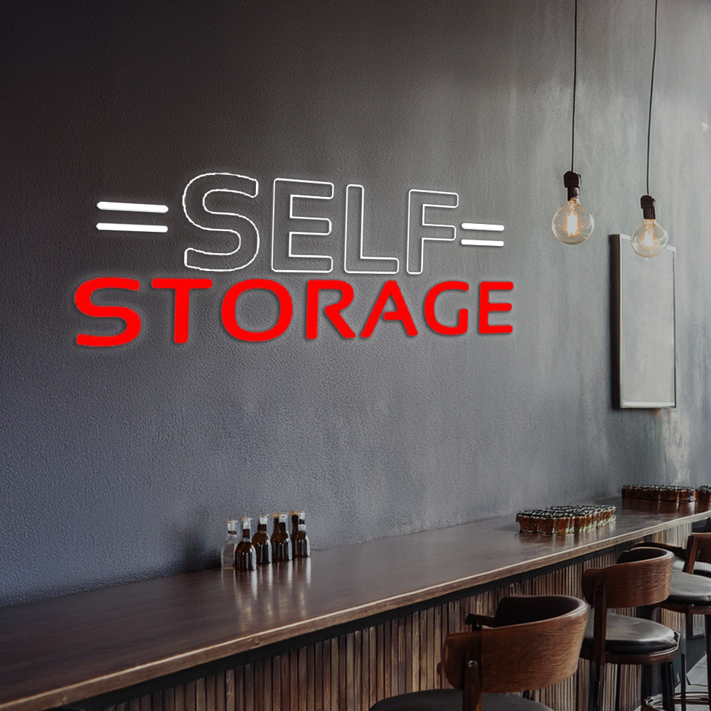 White Self Storage Block With Line Handmade Art Neon Sign