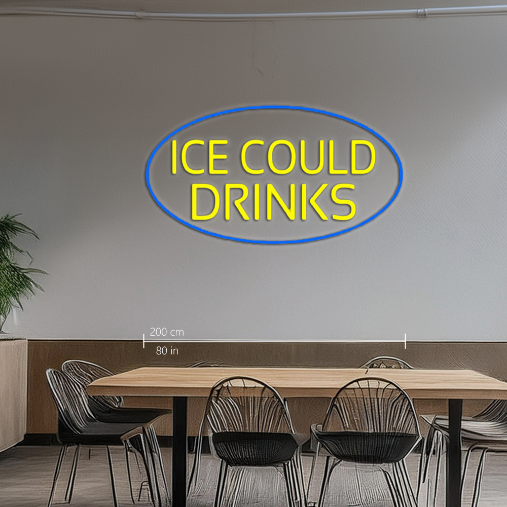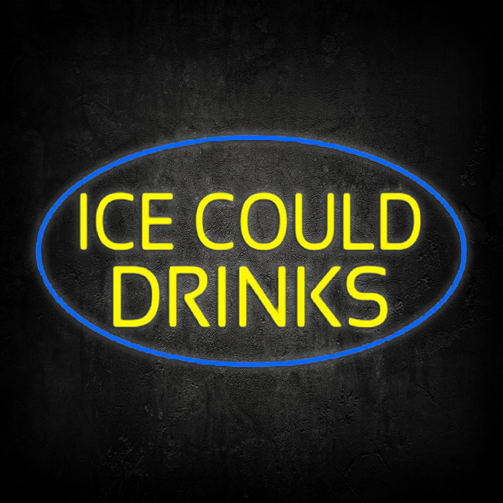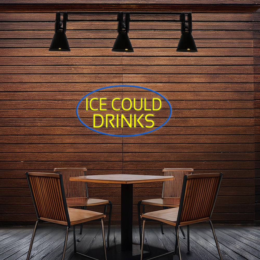 Yellow Ice Cold Drinks Handmade Art Neon Sign
